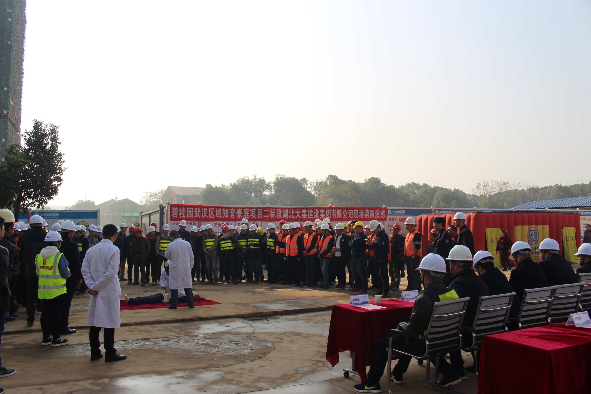蔡甸區(qū)建管站石進(jìn)洲書記、周波站長、范真科長、宋樹兵科長,蔡甸區(qū)大集街道周修超主任,碧桂園武漢區(qū)域漢口片區(qū)執(zhí)行總裁屈宇宏、武昌片區(qū)執(zhí)行副總裁鄢瑞林、工程管理部副總經(jīng)理葛志鵬、安全管理部副總經(jīng)理吳家應(yīng)、知音豪庭項(xiàng)目副總經(jīng)理馮俊林,湖北大集建設(shè)集團(tuán)副總經(jīng)理徐家富等出席參加了此次消防演習(xí)活動。
