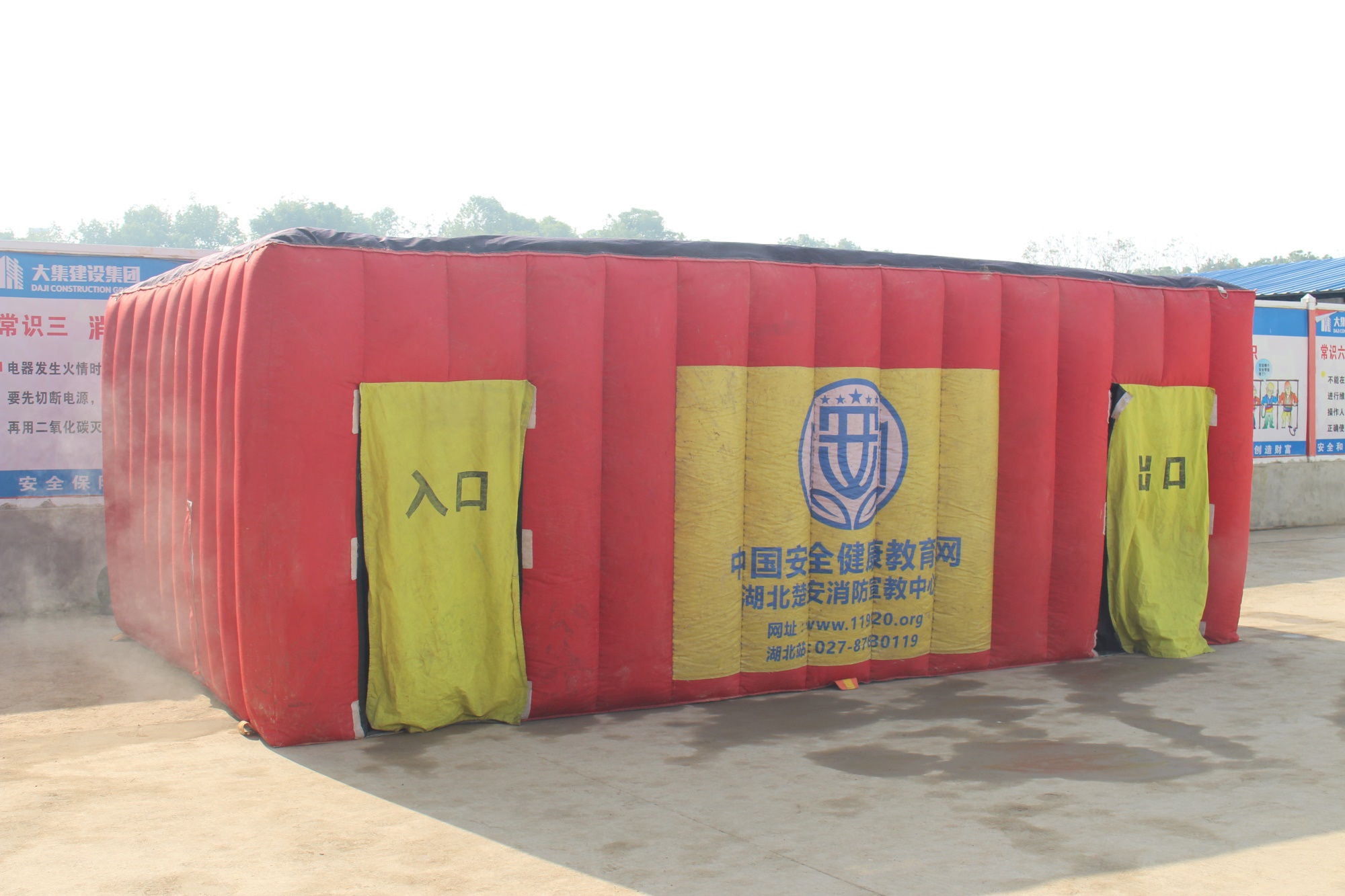 隨后,湖北楚安消防宣教中心王好主任帶領(lǐng)大家共同體驗(yàn)了應(yīng)急帳篷,應(yīng)急帳篷模擬了火災(zāi)煙霧及火災(zāi)的陰暗環(huán)境,現(xiàn)場人員在王主任的指導(dǎo)下有秩序地進(jìn)入帳篷進(jìn)行體驗(yàn)。