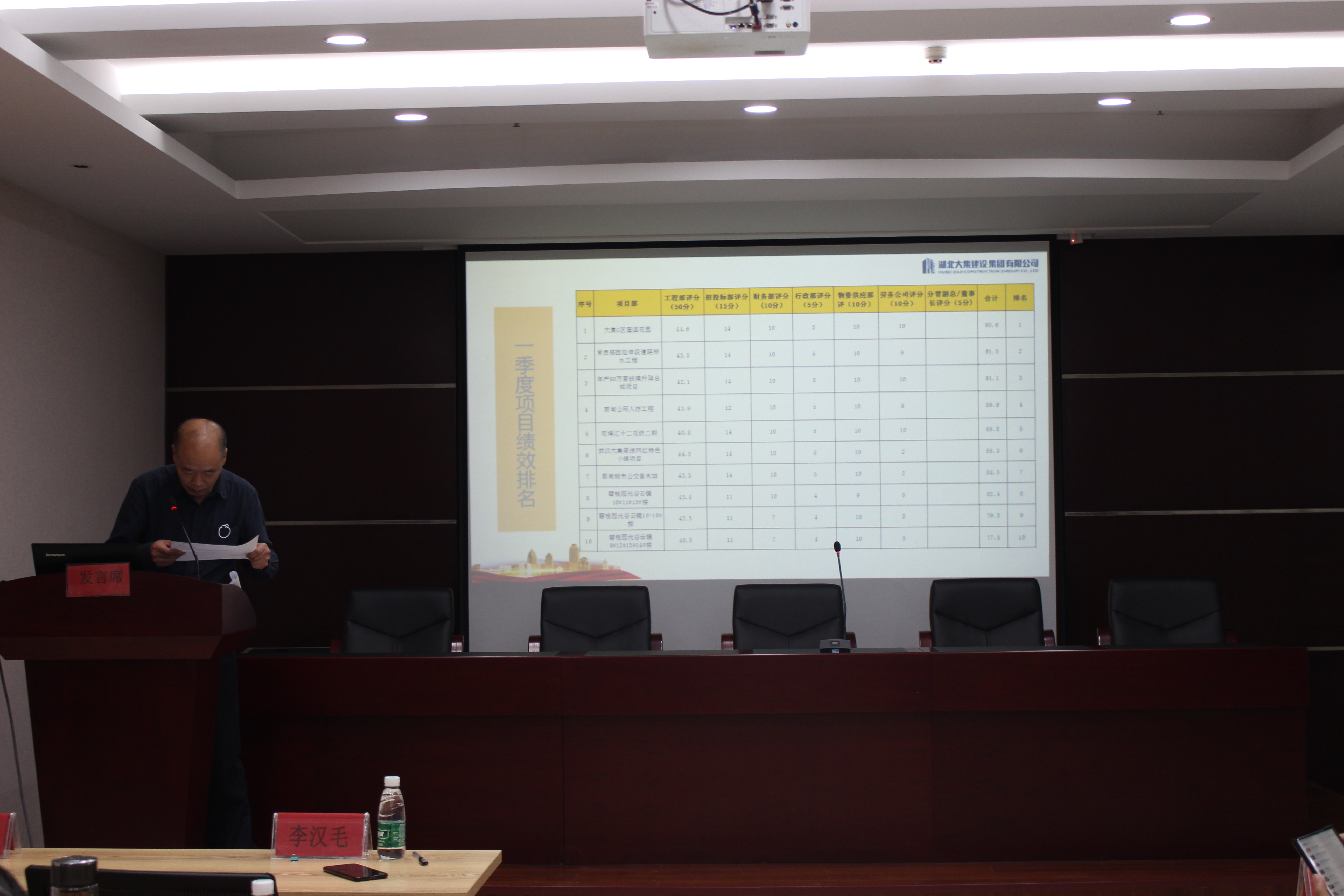 隨后,行政部部長李漢毛公布項目第一季度績效考核排名,并由集團公司董事長徐濤為第一季度項目績效冠軍——大集G區(qū)蓮溪花園項目頒發(fā)錦旗及獎金。