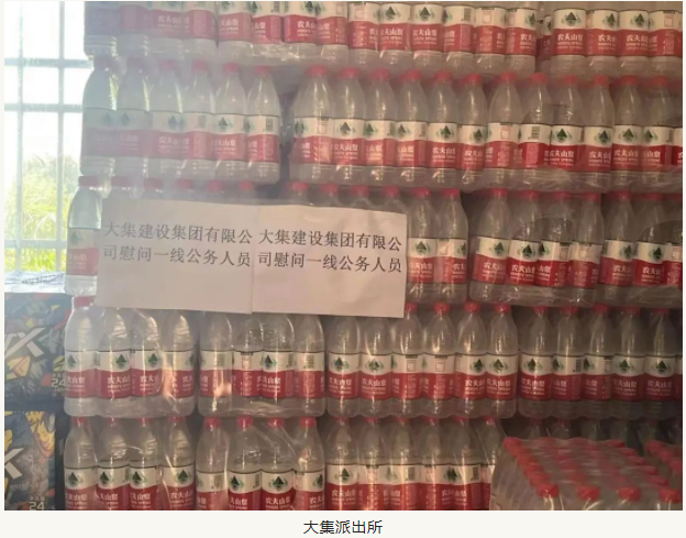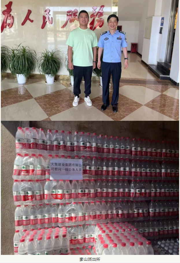 活動中,湖北大集建設(shè)集團分別向大集城管、大集派出所、大集交通隊、奓山派出所和奓山交通隊贈送了100箱礦泉水和20箱紅茶,并表達了對一線民警、交警和城管人員在高溫下堅守崗位的衷心感謝!