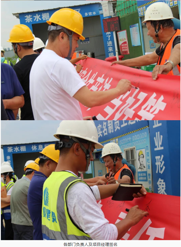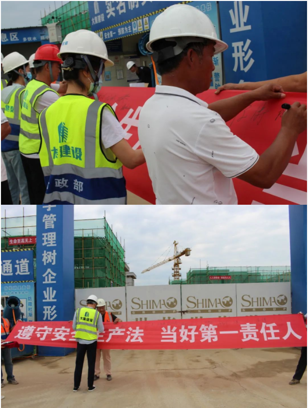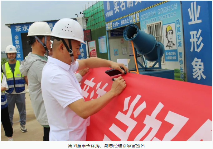 活動(dòng)開(kāi)始,集團(tuán)董事長(zhǎng)徐濤、副總經(jīng)理徐家富及各部門負(fù)責(zé)人、各項(xiàng)目經(jīng)理率先在“遵守安全生產(chǎn)法,當(dāng)好第一責(zé)任人”條幅上鄭重簽名,寫下對(duì)肩負(fù)安全生產(chǎn)責(zé)任的承諾,隨后各項(xiàng)目施工員、安全員紛紛在條幅上寫下自己的名字,表達(dá)對(duì)做好安全生產(chǎn)相關(guān)工作的信心和決心。