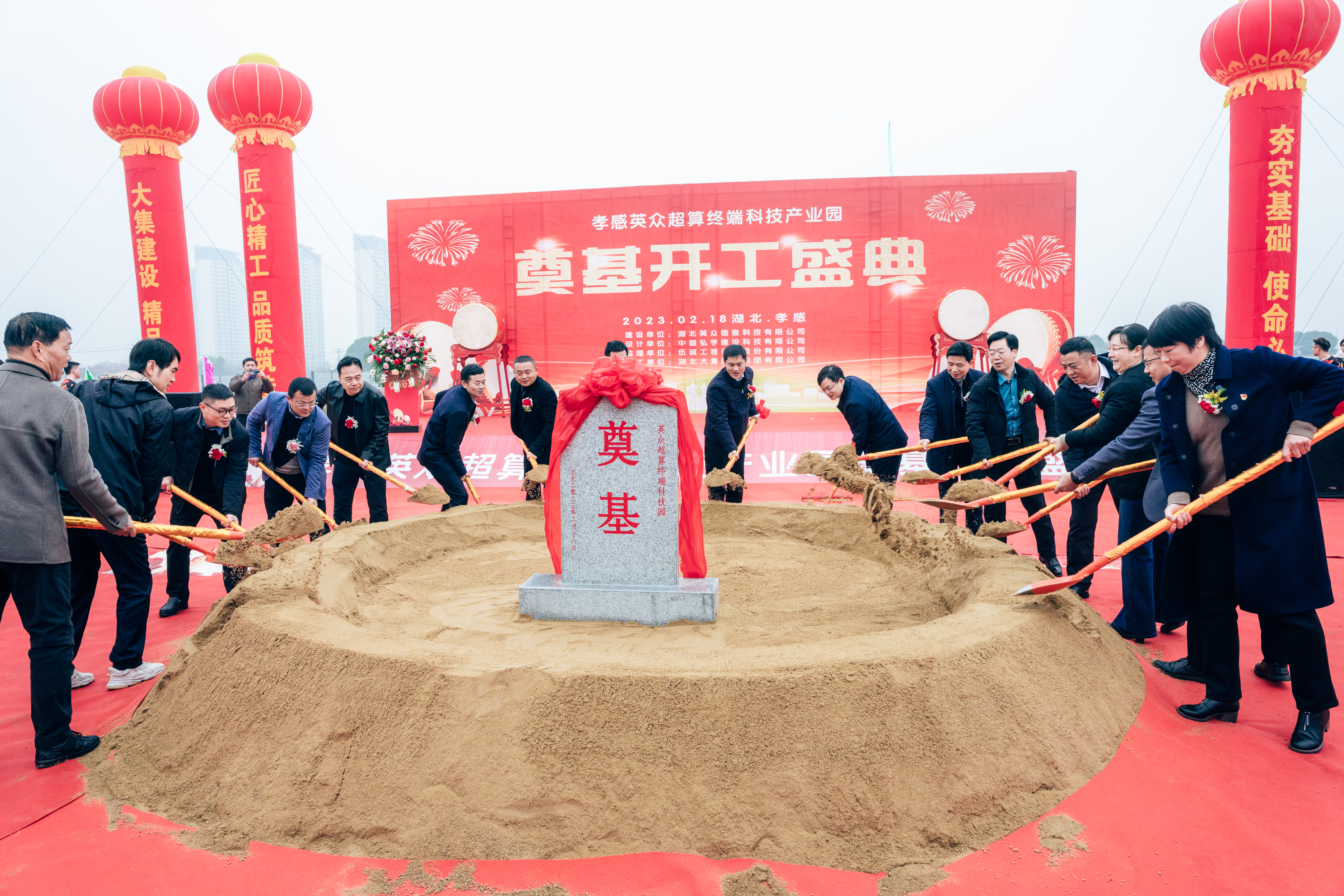 2月18日上午,由湖北大集建設(shè)集團(tuán)總承包的英眾超算終端科技產(chǎn)業(yè)園生產(chǎn)項(xiàng)目開工儀式隆重舉行,孝感市委常委、統(tǒng)戰(zhàn)部部長、高新區(qū)黨工委書記賀衛(wèi)東,高新區(qū)黨工委副書記、管委會(huì)主任舒俊,市委統(tǒng)戰(zhàn)部常務(wù)副部長盛夏,高新區(qū)黨工委委員、紀(jì)檢監(jiān)察工委書記張文平等政府領(lǐng)導(dǎo),上海英眾信息科技有限公司兼湖北英眾信息科技有限公司總經(jīng)理劉純堅(jiān),上海英眾信息科技有限公司董事會(huì)秘書、副總經(jīng)理孫峰,湖北銘洛科技有限公司董事長阮洋,以及集團(tuán)公司董事長徐濤、總經(jīng)理徐遠(yuǎn)征、董事許江、副總經(jīng)理徐家富出席參加了奠基儀式。