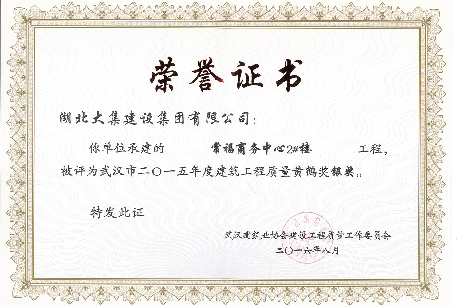 集團(tuán)在發(fā)展壯大的同時(shí),堅(jiān)持守法經(jīng)營(yíng)、依法納稅,堅(jiān)持履行社會(huì)責(zé)任,多年來積極投身社會(huì)公益事業(yè)。省、市、區(qū)行業(yè)主管部門連續(xù)多年授予公司為“武漢地區(qū)建筑業(yè)AAA信譽(yù)企業(yè)”、“武漢地區(qū)建筑業(yè)優(yōu)秀企業(yè)”、“武漢市最具成長(zhǎng)性民營(yíng)建筑企業(yè)”、“勞動(dòng)保障守法誠(chéng)信A級(jí)單位”等榮譽(yù),多次被省、市工商局評(píng)為“守合同重信用”企業(yè),多年被地方政府授予“納稅貢獻(xiàn)獎(jiǎng)”。