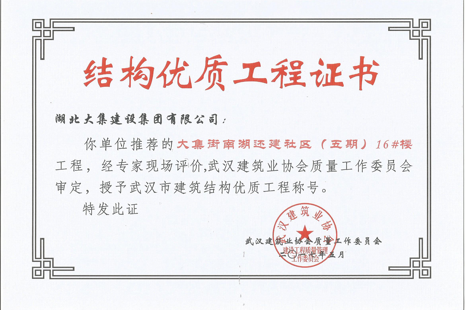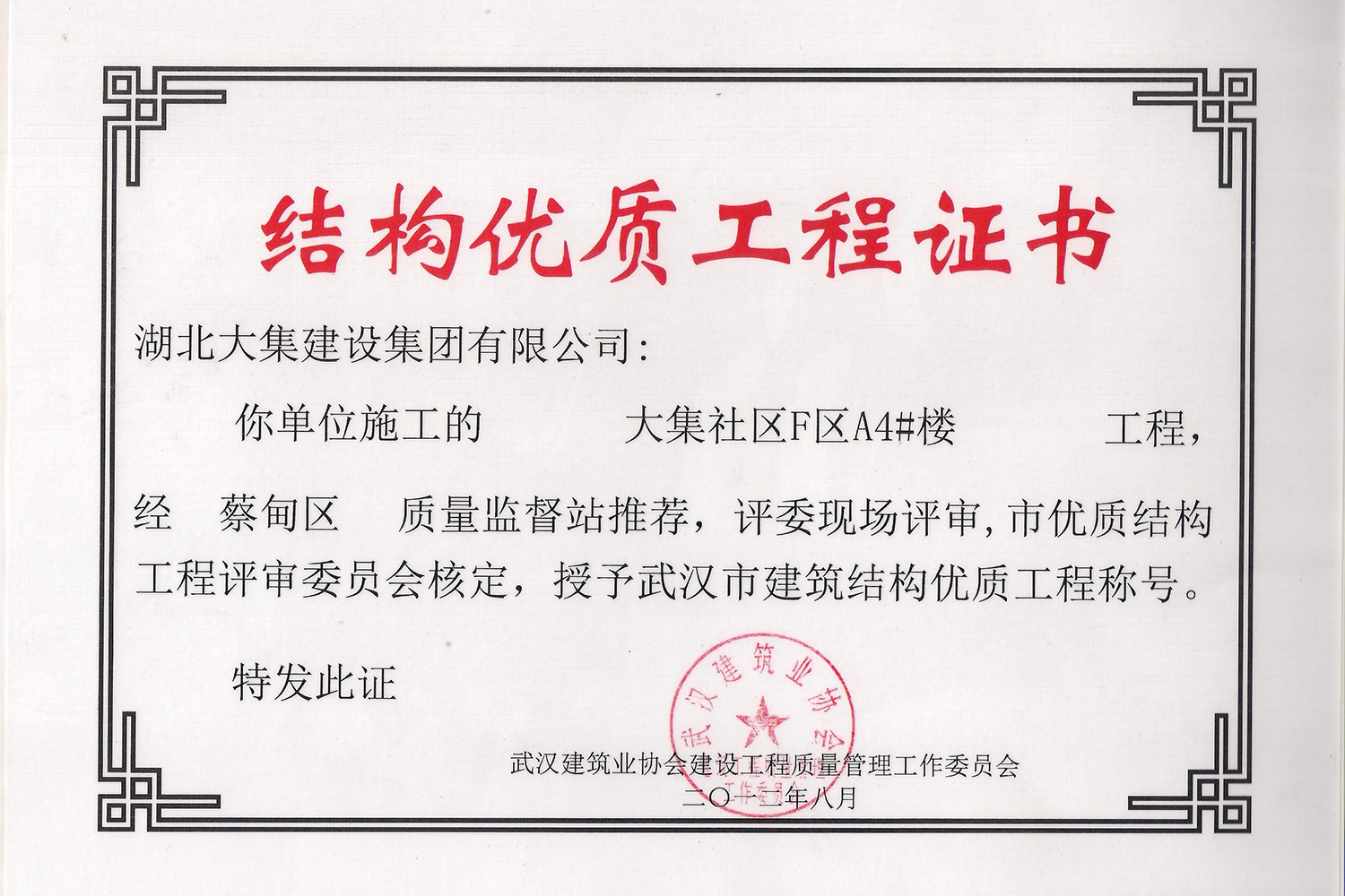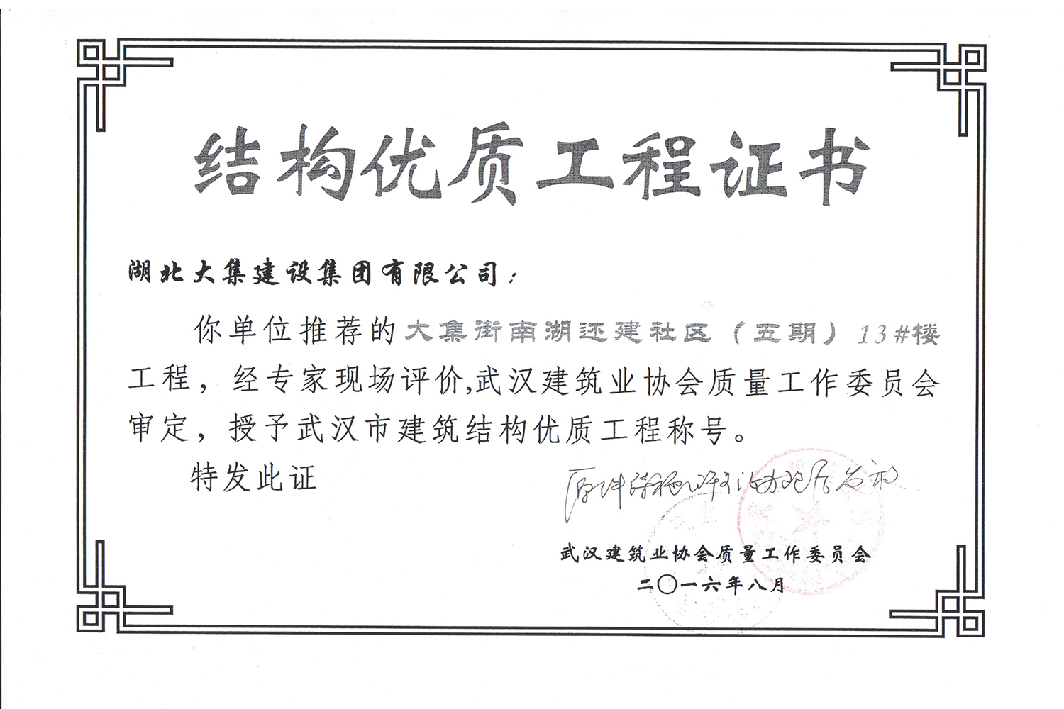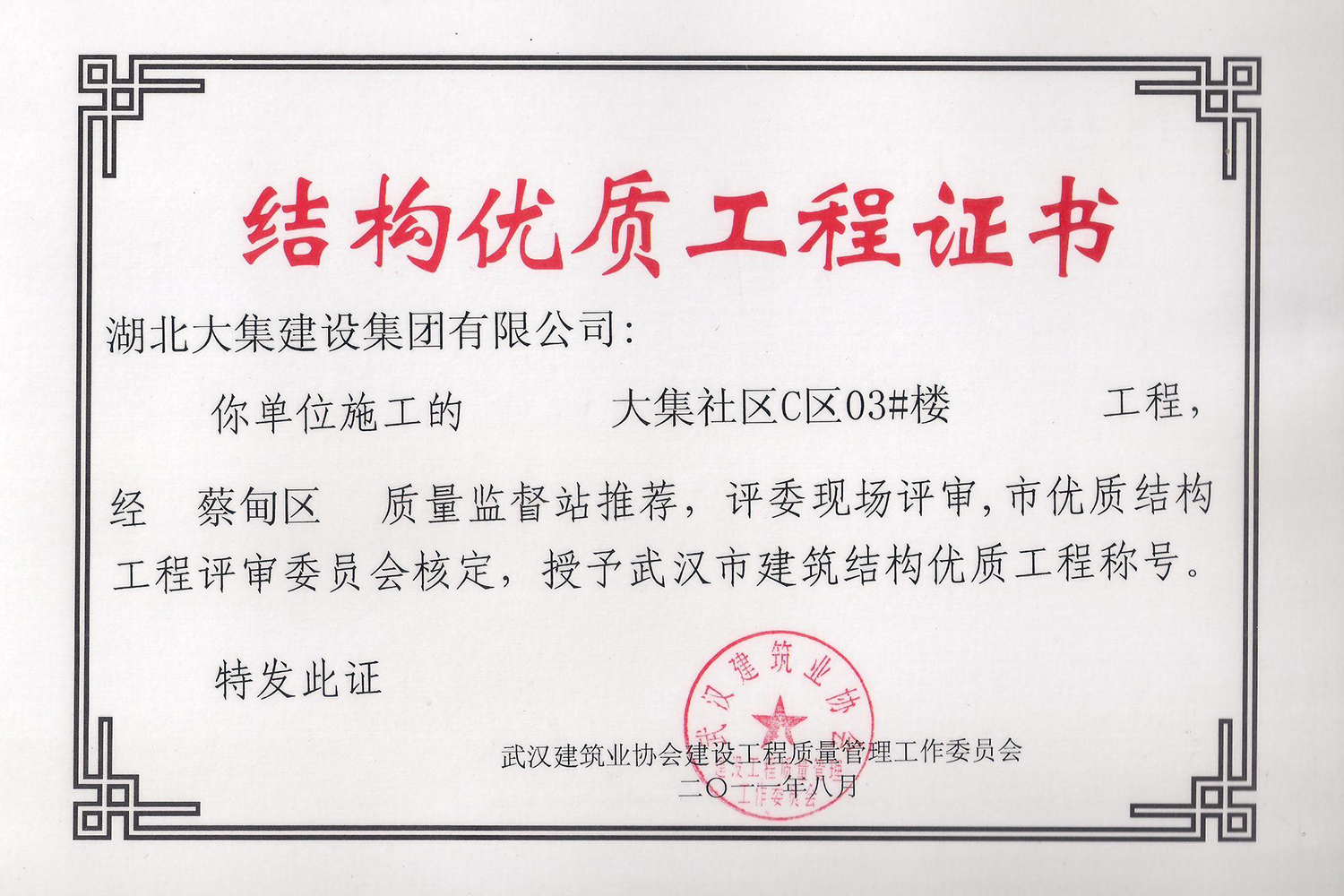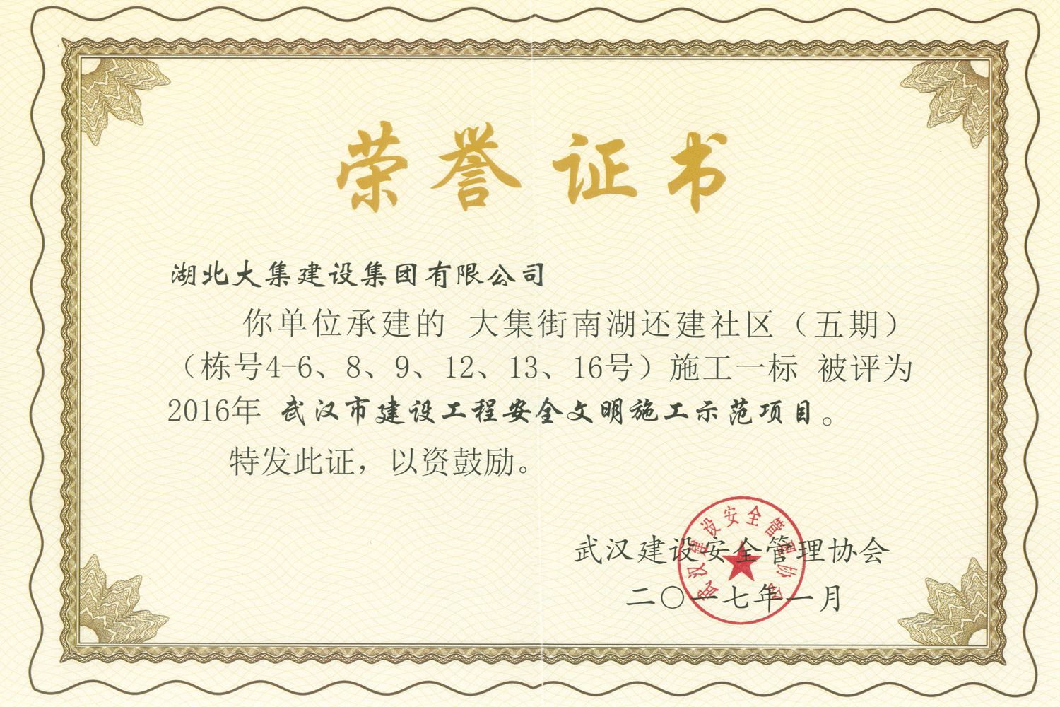 集團(tuán)秉持“安全是紅線,質(zhì)量是品牌,文明施工是形象”的企業(yè)宗旨,不斷加強(qiáng)全面管理,注重提高自身素質(zhì),以完美的履約、優(yōu)良的質(zhì)量、滿意的服務(wù),贏得了信譽(yù)。近年來,湖北大集建設(shè)集團(tuán)先后與中石化集團(tuán)、中鐵上海工程局、中建八局、中鐵十二局、碧桂園集團(tuán)、世茂集團(tuán)、綠地集團(tuán)等央企、國(guó)企、地方標(biāo)志性建設(shè)單位合作,先后承建了“碧桂園知音豪庭”項(xiàng)目、“碧桂園光谷云境”項(xiàng)目、“大集G區(qū)蓮溪花園”項(xiàng)目等多個(gè)高層住宅小區(qū);承建了世茂龍灣46#、47#、48#地塊、花博匯桃李春風(fēng)二期等多個(gè)精品高端別墅群項(xiàng)目;承建了“南湖中學(xué)”、“南湖小學(xué)”、“南湖幼兒園”、“博奧幼兒園”等多個(gè)教育配套項(xiàng)目;承建了“孝感英眾超算終端科技產(chǎn)業(yè)園”、“鴻盛華全球航空服務(wù)產(chǎn)業(yè)園”、“盟盛汽車產(chǎn)業(yè)園”、“中原印務(wù)晶毅”等多個(gè)具有特殊設(shè)備安裝需求的鋼、混結(jié)構(gòu)工業(yè)廠房項(xiàng)目;承建了“常福商務(wù)廣場(chǎng)”等大型商業(yè)綜合體;承建了后官湖綠道二期、三期,常貴路西延伸段、黃星大道等多條大型道路市政項(xiàng)目;自主開發(fā)了“聚盛晶尚”住宅項(xiàng)目,改善人居環(huán)境,引領(lǐng)綠色棲居新領(lǐng)域;所有工程嚴(yán)格執(zhí)行施工作業(yè)全過程質(zhì)量、安全管理,多個(gè)項(xiàng)目被省、市級(jí)監(jiān)管單位授予“省結(jié)構(gòu)優(yōu)質(zhì)”、“省安全文明施工現(xiàn)場(chǎng)”、“市結(jié)構(gòu)優(yōu)質(zhì)”、“市安全文明施工示范項(xiàng)目”、“樣板工地”等榮譽(yù)稱號(hào)。
