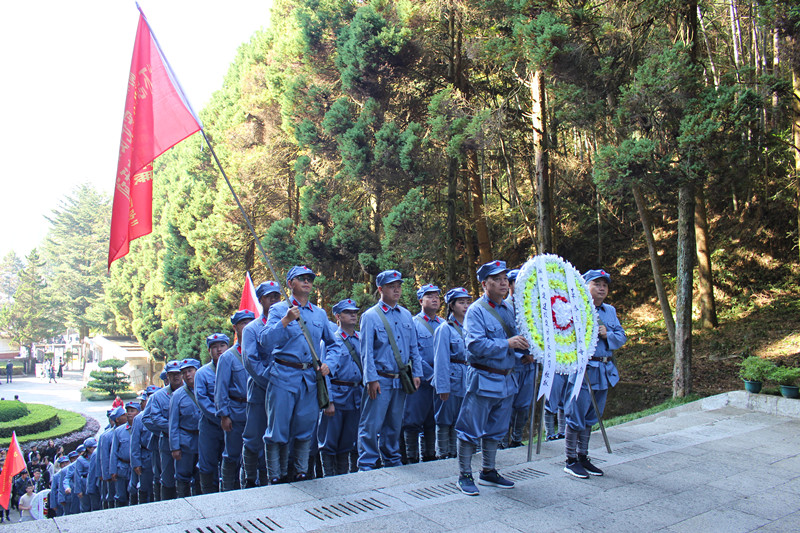 在井岡山革命烈士陵園,學(xué)員們懷著崇高的敬意向革命英烈敬獻(xiàn)花圈,肅立默哀,感悟先烈追求理想信念,不怕?tīng)奚某绺咂焚|(zhì)。