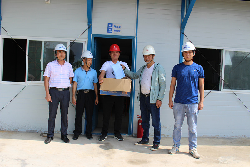 小集還建社區(qū)五期地下室、大集消防站、世茂龍灣、泰禾君悅花園……每到一處,集團(tuán)工程部都會將購買好的毛巾、風(fēng)油精、十滴水、人丹、藿香正氣水等防暑降溫物資送到項目人員手中,并要求各項目部一定要把施工人員的身體健康放在首位,要在全力以赴抓質(zhì)量、搶進(jìn)度、創(chuàng)佳績的同時,嚴(yán)格按照國家有關(guān)規(guī)定,把防暑降溫工作落實(shí)好、做到位,要根據(jù)天氣氣溫的變化,合理安排工作時間,作好安全預(yù)防措施、備足防暑降溫物質(zhì),讓員工們安全度過高溫天氣。