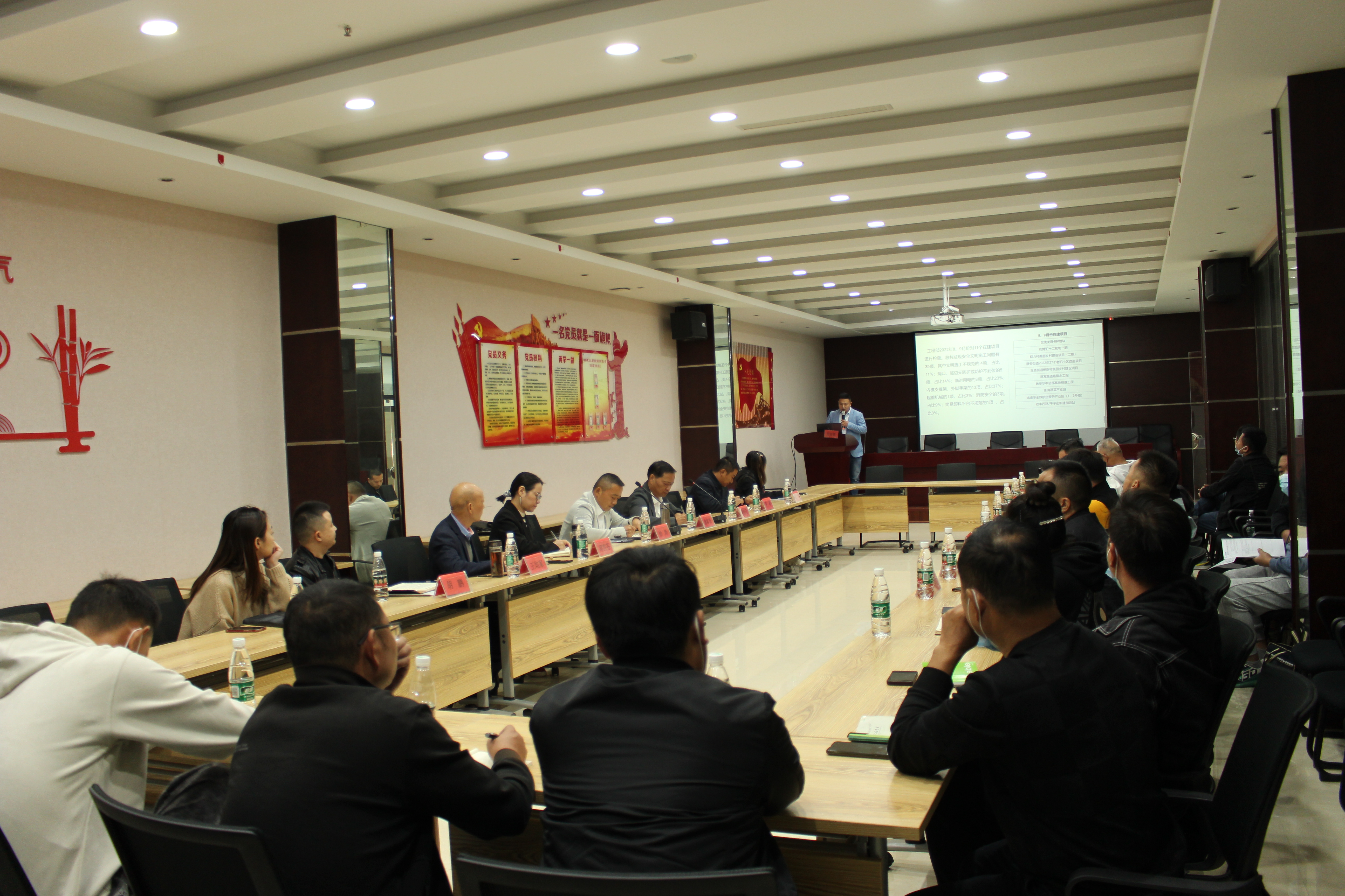 會議現(xiàn)場,工程部對8、9月項目安全、質(zhì)量檢查情況進(jìn)行了詳細(xì)通報。隨后,蔡甸街道27個老舊小區(qū)改造、鴻盛華產(chǎn)業(yè)園、世茂48#地塊、玉賢楊新村美麗鄉(xiāng)村、常發(fā)路道路排水等項目先后對項目當(dāng)前存在的問題進(jìn)行匯報,公司領(lǐng)導(dǎo)及相關(guān)職能部門針對項目匯報情況逐一回應(yīng)解答。