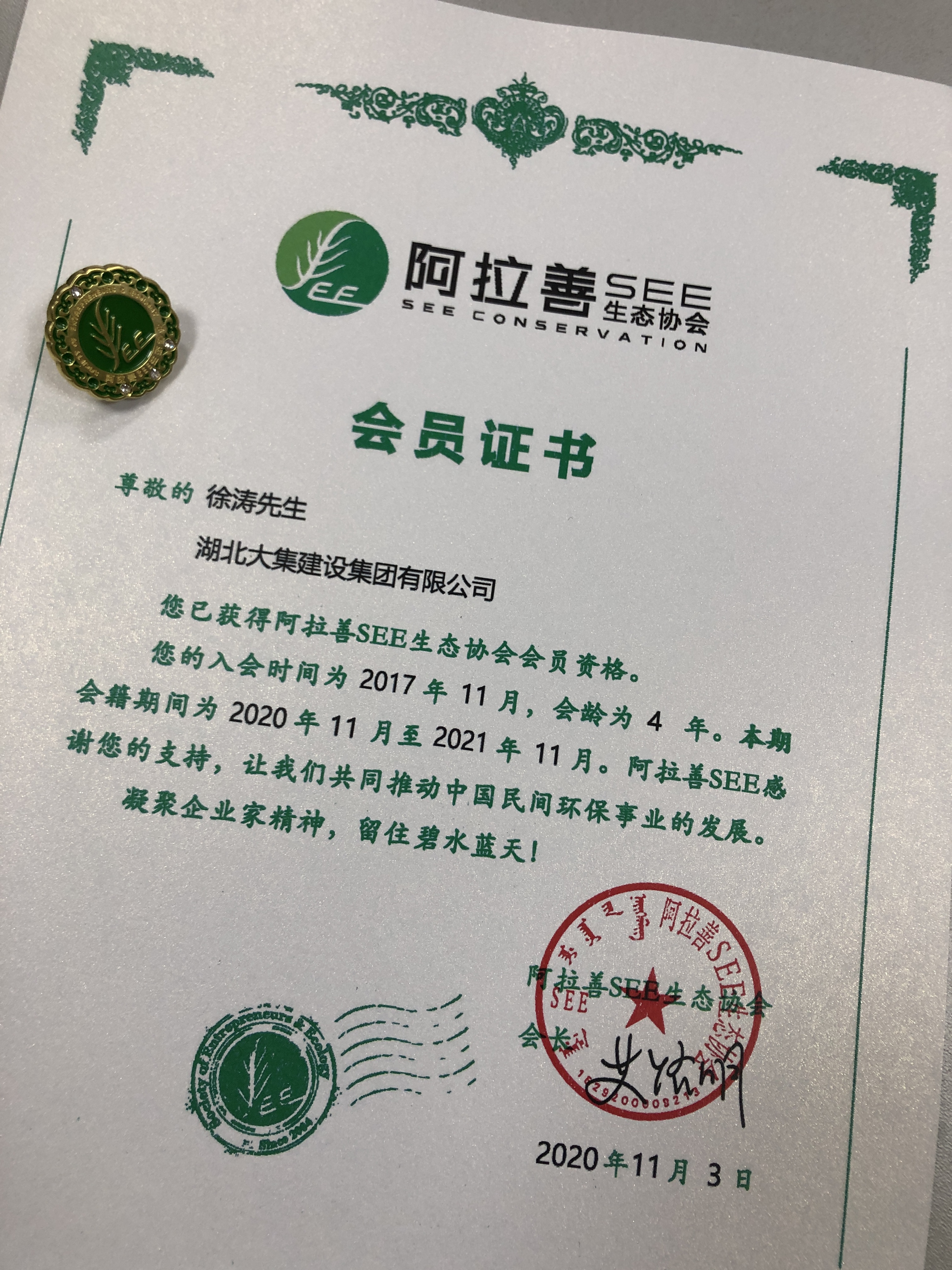 今年,是集團公司加入阿拉善SEE生態(tài)協(xié)會的第四年。在環(huán)保這條路上,湖北大集建設集團在董事長徐濤的帶領下將繼續(xù)攜手阿拉善SEE,與一個又一個同行者一起,把善念善行落實到公益環(huán)保項目中,凝聚企業(yè)家精神,推動環(huán)保公益,力爭為中國的環(huán)保事業(yè)做出更大的貢獻,保護生態(tài)地球,共建美好家園。