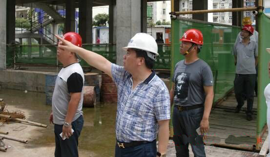 2015年6月13日周六上午,集團(tuán)公司召開完周行政工作例會(huì)后,在總經(jīng)理徐遠(yuǎn)征同志的帶領(lǐng)下,市場管理部、工程管理部、招投標(biāo)部、綜合管理部、市政分公司負(fù)責(zé)人第一站來到蔡甸大拇指廣場檢查施工現(xiàn)場文明施工整改情況,總經(jīng)理首先肯定了上次檢查整改后施工現(xiàn)場明顯改觀,隨后就進(jìn)一步完善圍擋角區(qū)、安全帽佩戴等進(jìn)一步提出了要求;第二站來到大集張堡小學(xué)施工現(xiàn)場,對墻基坑深度提出了嚴(yán)格按圖紙施工的規(guī)范要求,安排由公司工程管理部對該施工工地實(shí)行24小時(shí)嚴(yán)格監(jiān)管的做法得到了校方領(lǐng)導(dǎo)的充分肯定。