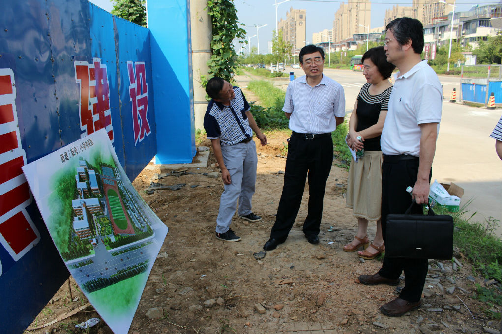 2016年8月12日,上午9:30武漢市教育局主要領(lǐng)導(dǎo)一行8人來到蔡甸區(qū)天鵝湖大道,考察了南湖(新光)小學(xué)建設(shè)情況。區(qū)教育局領(lǐng)導(dǎo),集團(tuán)公司徐副總及工程部負(fù)責(zé)人一起陪同。