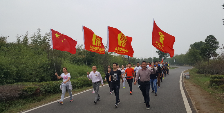 “1234,1234,大集,大集,齊心協(xié)力,奮勇向前,只爭朝夕……”整齊劃一的吶喊聲和腳步聲迎面而來,鮮艷奪目的企業(yè)司旗,年輕似火的團(tuán)隊(duì)成員一一盡現(xiàn)眼簾,大家表現(xiàn)得十分活躍,動(dòng)作協(xié)調(diào),緊密配合,處處可以感受到團(tuán)隊(duì)合作的力量。在這里,在此時(shí),正在如火如荼的上演一場熱身賽。這里是后官湖濕地公園的跑道上,也是湖北大集建設(shè)集團(tuán)為參加本月底半馬比賽而組織的集結(jié)地。