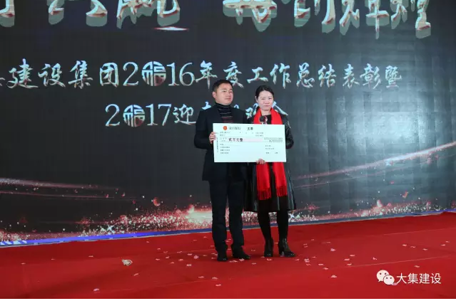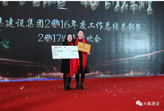 為樹立典型、激勵先進,讓廣大員工在工作中奮勇向前,形成人人爭先的良好企業(yè)文化氛圍,2016年大集建設總結表彰大會上,集團公司副總吳家珍女士代表集團公司宣讀了《關于表彰2016年度優(yōu)秀、先進集體與個人的決定》,并邀請嘉賓上臺頒發(fā)了五大獎項及先進個人獎:特別敬業(yè)獎、特殊貢獻獎、先進部門、優(yōu)秀項目部和外部業(yè)務拓展獎。