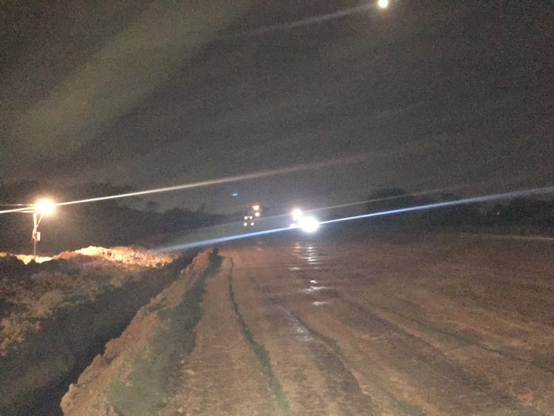 明亮的探照燈刺破黑暗的夜瓊,開辟出一片亮色。亮光里,絡繹不絕的車輛安靜行進,相隔不遠的施工人員有序指揮,裝載,回填,推土、碾壓,所有的工序有條不紊,一條寬闊的路基漸漸成型!