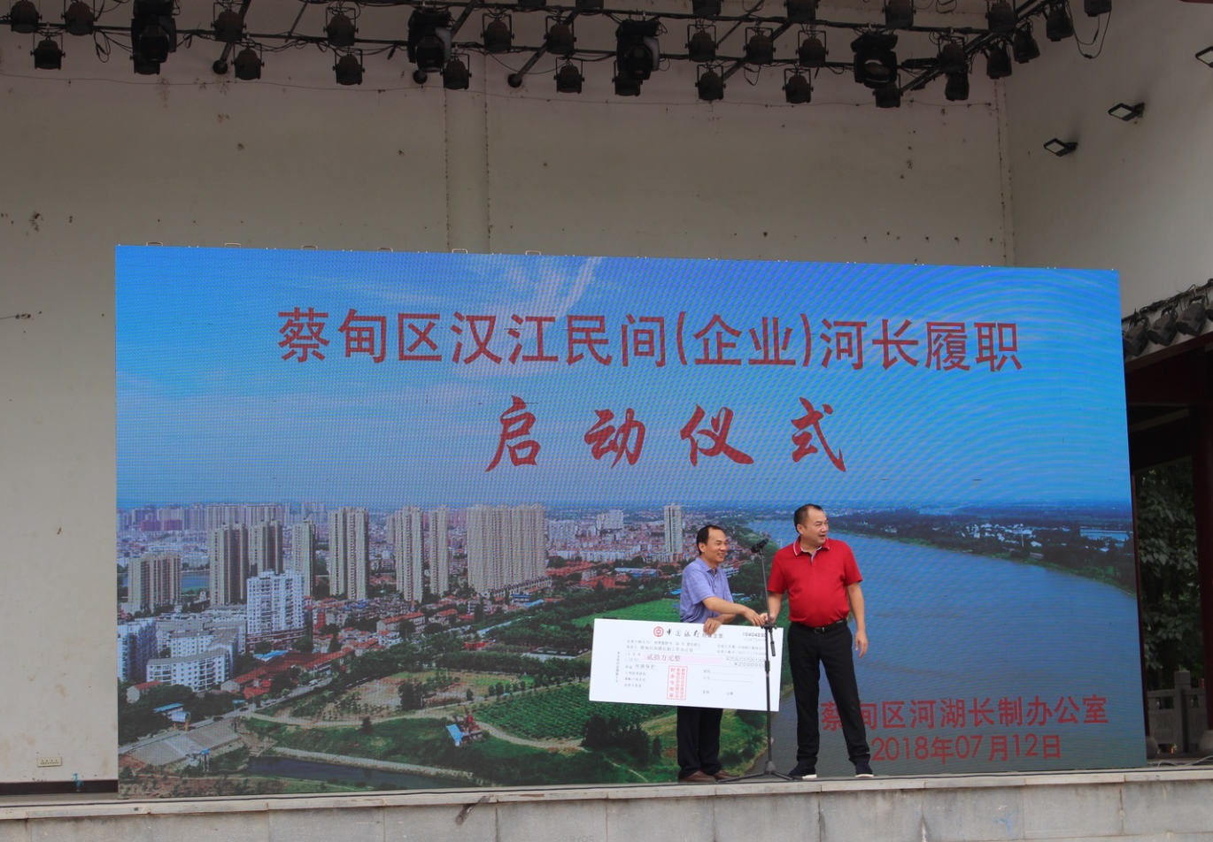 蔡甸區(qū)企業(yè)家協(xié)會、蔡甸區(qū)企業(yè)聯(lián)合會代表向蔡甸區(qū)河湖長制辦公室捐贈河湖保護(hù)獎(jiǎng)勵(lì)基金20萬元