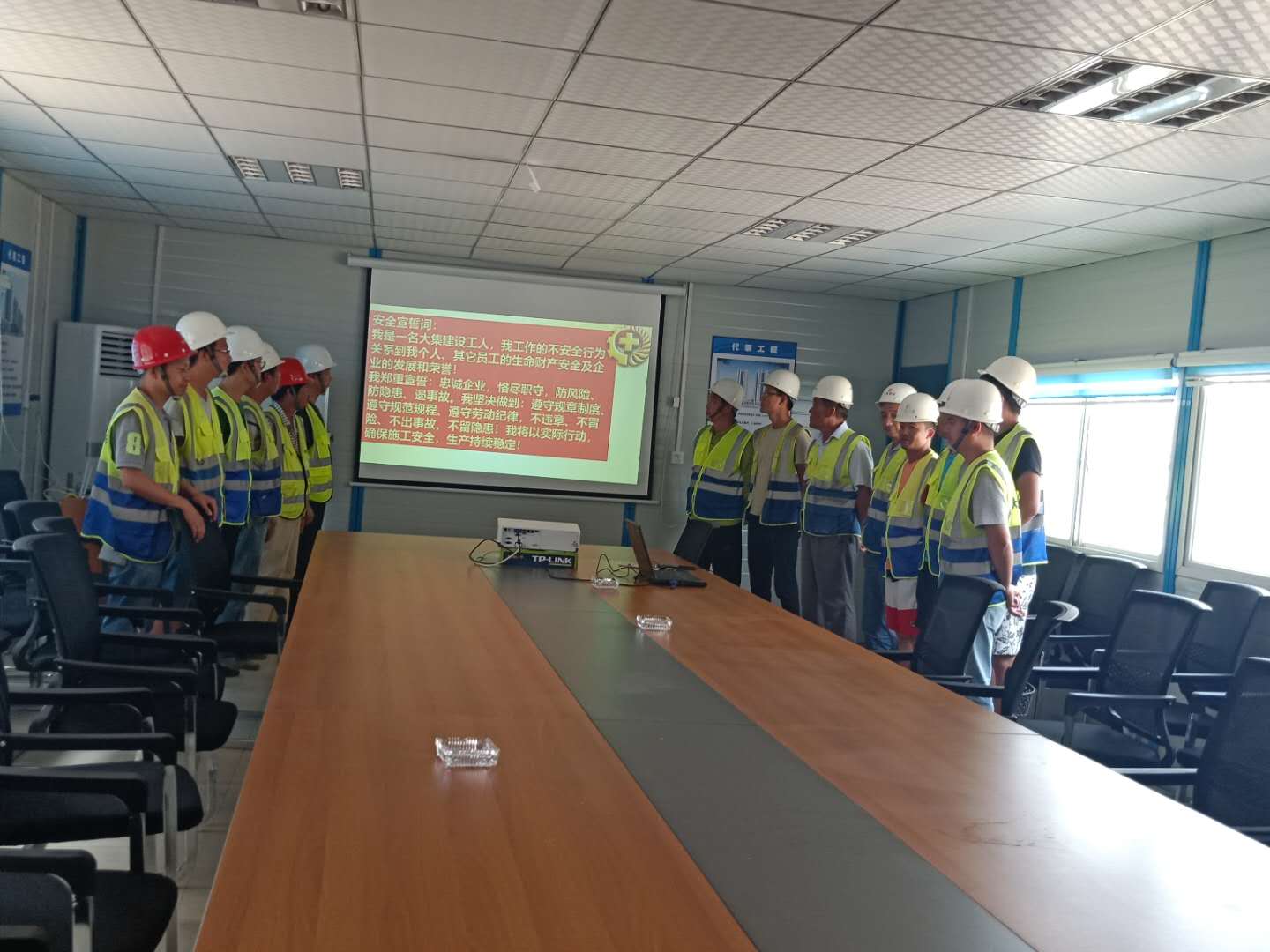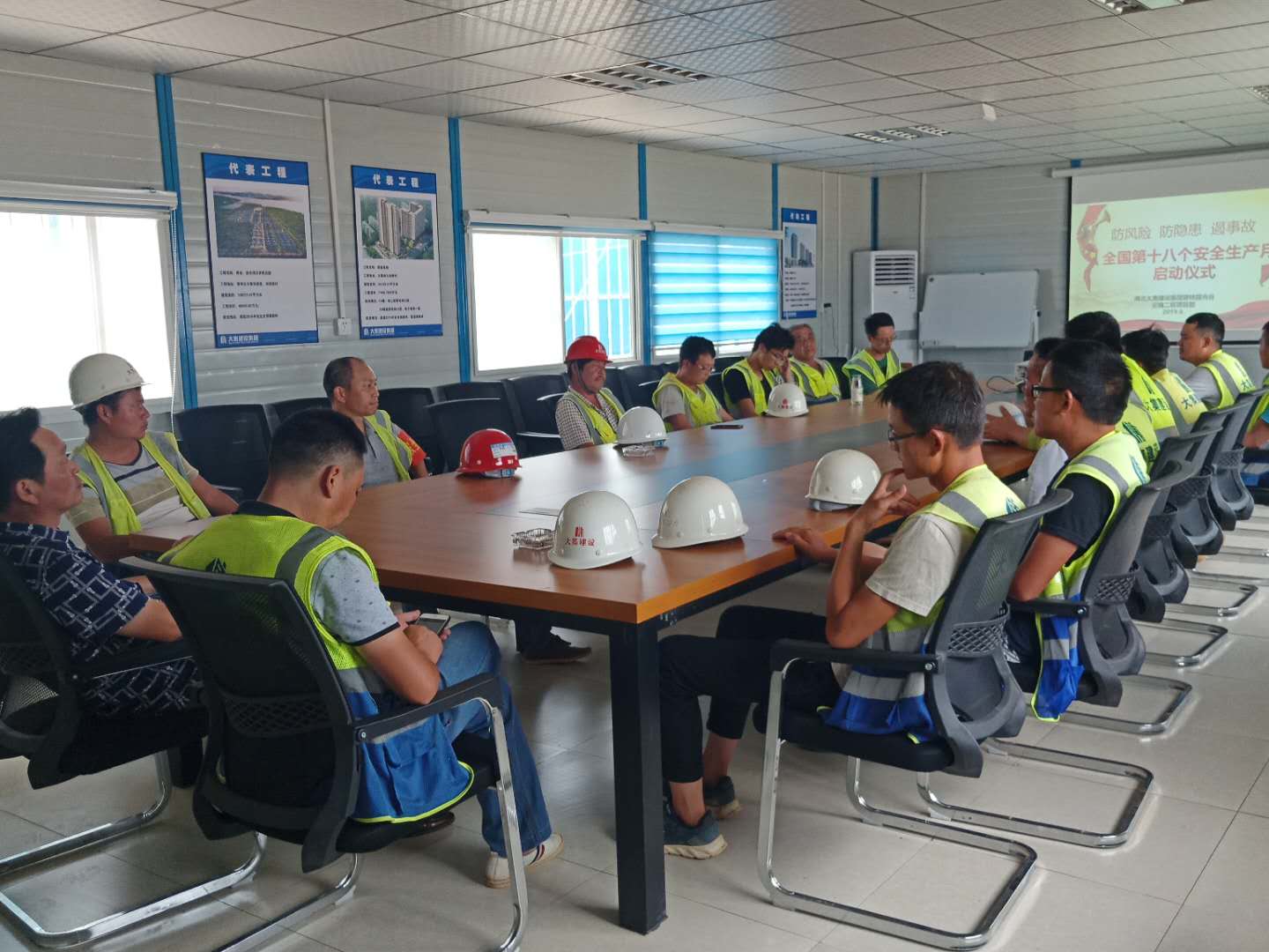 啟動(dòng)儀式上,生產(chǎn)經(jīng)理陳超首先向大家講解了防范化解重大風(fēng)險(xiǎn),及時(shí)消除安全隱患,有效遏制生產(chǎn)安全事故的重要性,并著重強(qiáng)調(diào)了夏季高溫防中暑的各項(xiàng)安全措施、夜間施工現(xiàn)場(chǎng)照明及檢查監(jiān)督事項(xiàng)。隨后,組織了全體人員進(jìn)行安全月活動(dòng)的宣誓。通過(guò)集體安全宣誓,進(jìn)一步推動(dòng)了現(xiàn)場(chǎng)施工人員由“要我安全”為“我要安全”觀念的轉(zhuǎn)變,現(xiàn)場(chǎng)施工人員也紛紛表態(tài)要堅(jiān)守安全生產(chǎn)這條紅線,確保工程項(xiàng)目順利安全推進(jìn)。