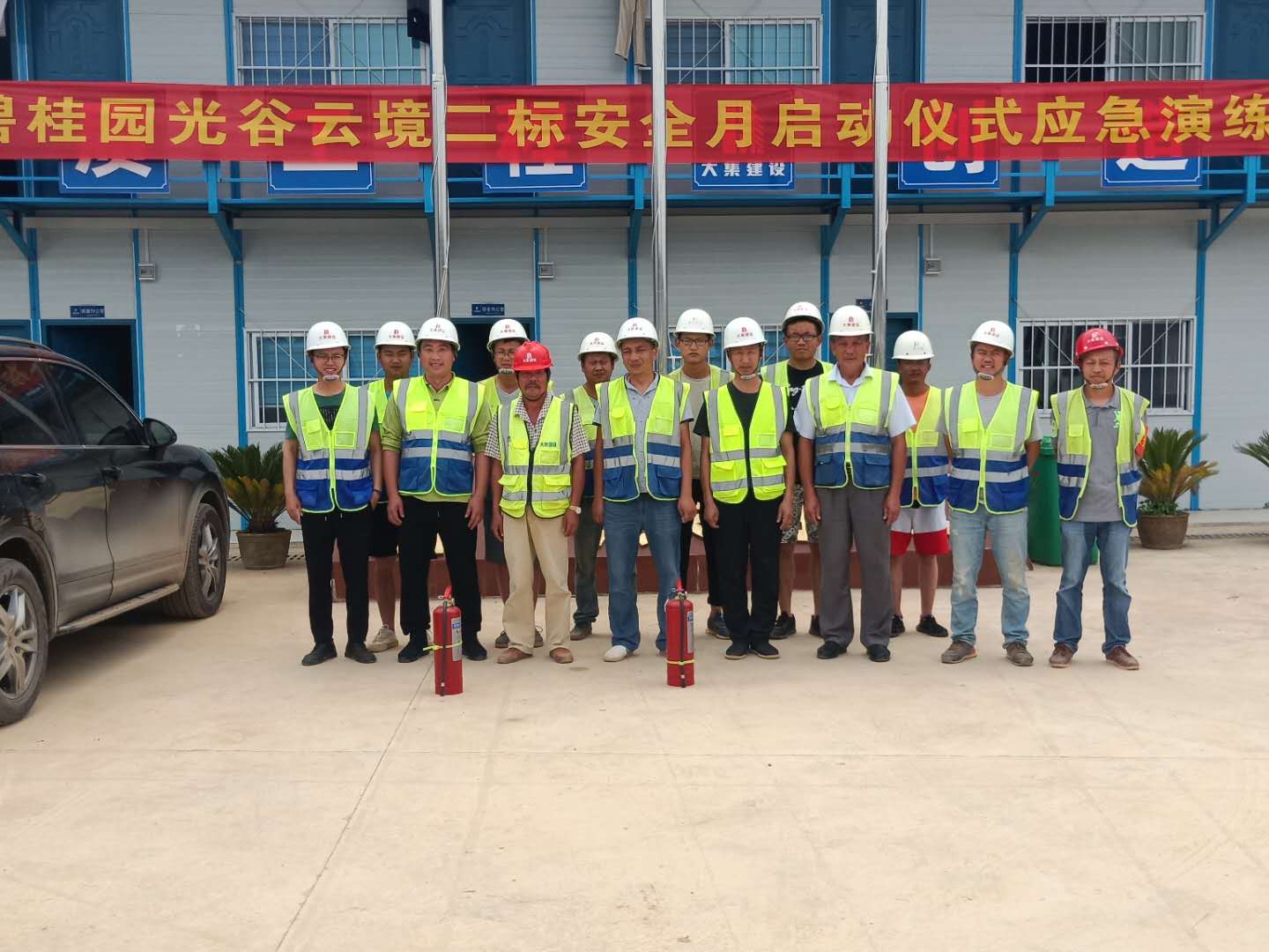 會(huì)后,項(xiàng)目部進(jìn)行消防應(yīng)急演練。首先,項(xiàng)目安全員左誠(chéng)向大家詳細(xì)講解了出現(xiàn)火災(zāi)時(shí),易燃物、線路、油品等不同的情況下如何使用對(duì)應(yīng)的滅火器以及使用步驟,還明確介紹了發(fā)生火災(zāi)后處理險(xiǎn)情的步驟。隨后,按照事先火災(zāi)模擬設(shè)置安排,各應(yīng)急救援人員迅速集結(jié),在統(tǒng)一指揮下按照職責(zé)分工迅速開展救援行動(dòng),疏散工人、切斷電源、使用滅火器、撲滅火源……通過(guò)一系列緊急救援行動(dòng),初期明火被撲滅,達(dá)到了預(yù)期的效果。