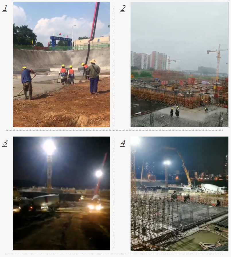 在項(xiàng)目部全體員工上下一心、團(tuán)結(jié)一致的沖刺下,施工現(xiàn)場(chǎng)呈現(xiàn)一片熱火朝天、緊張繁忙的景象:白天,挖機(jī)不停地鏟土、運(yùn)土,運(yùn)輸車輛不斷地往來運(yùn)輸,塔吊不停揮舞著“鐵臂”,施工人員分布在工地各個(gè)角落,緊張有序地忙碌著;深夜,工地上依舊燈火通明,機(jī)械聲不斷,夜間氣溫雖比白天低了一些,但汗水仍舊濕透了施工人員們的衣背。