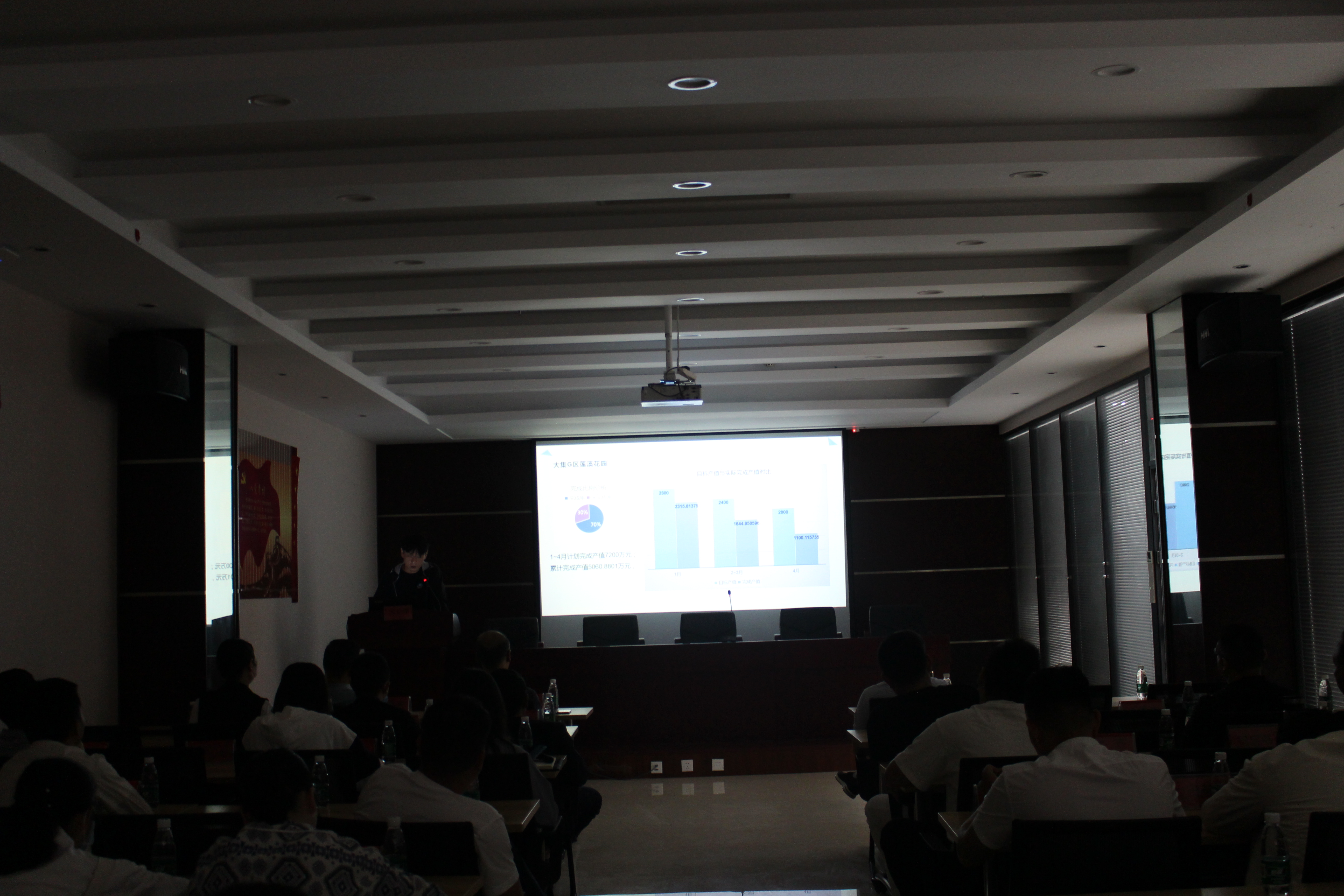 工程部質(zhì)檢員鄧文俊以數(shù)據(jù)說話,通過清晰明了的柱狀圖、餅狀圖對比,向大家匯報了截至4月底,集團公司總產(chǎn)值完成情況以及各項目產(chǎn)值完成情況及進度,并逐一分析了各項目產(chǎn)值未完成的原因。