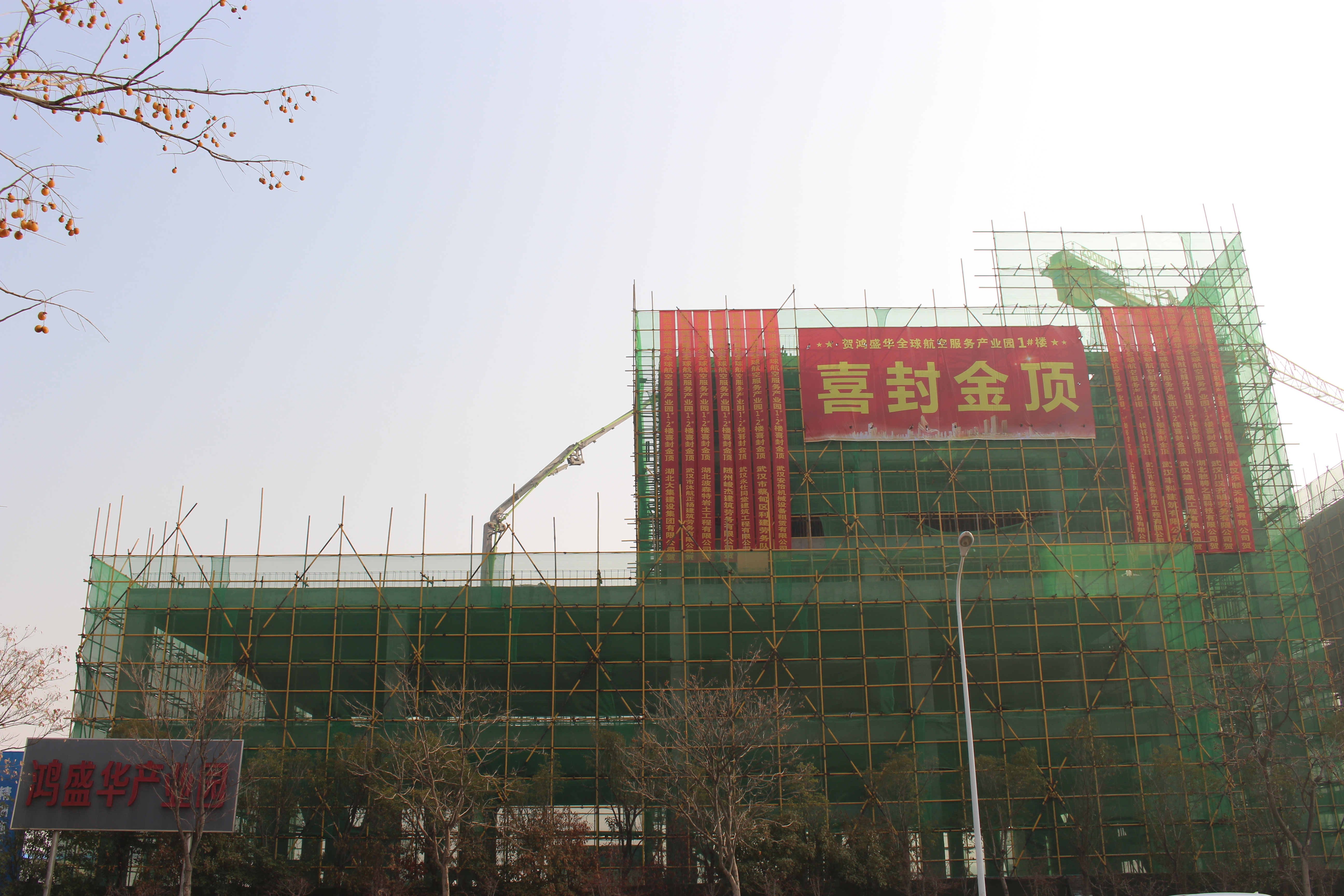 1月9日上午,晴空萬里,惠風(fēng)和暢,湖北大集建設(shè)集團(tuán)承建的鴻盛華全球航空服務(wù)產(chǎn)業(yè)園項(xiàng)目1#廠房喜封金頂。