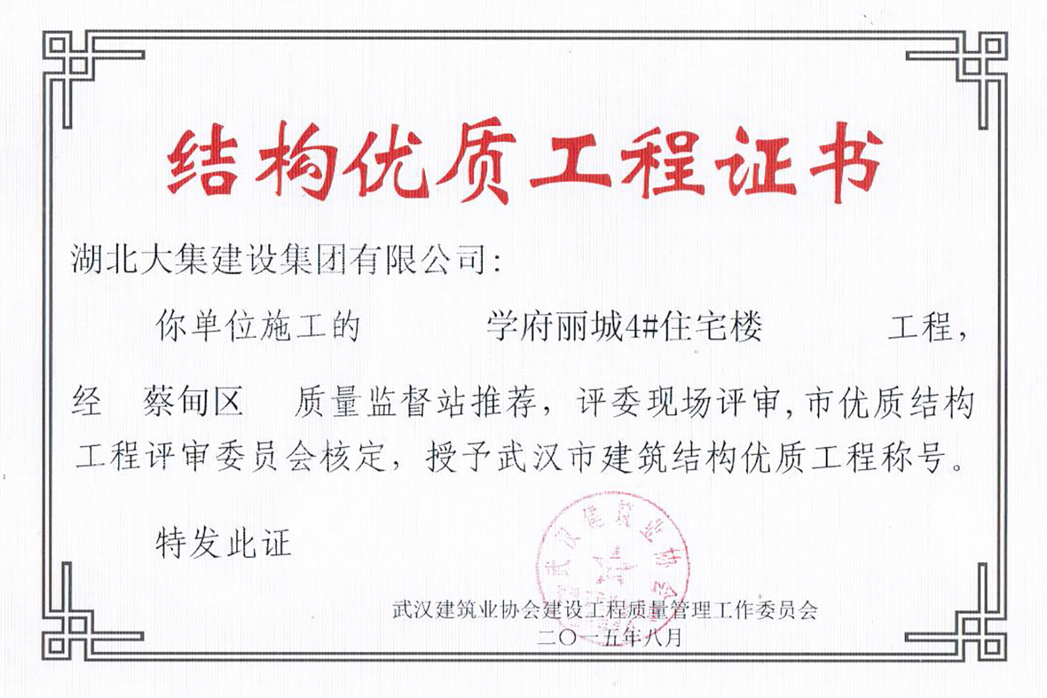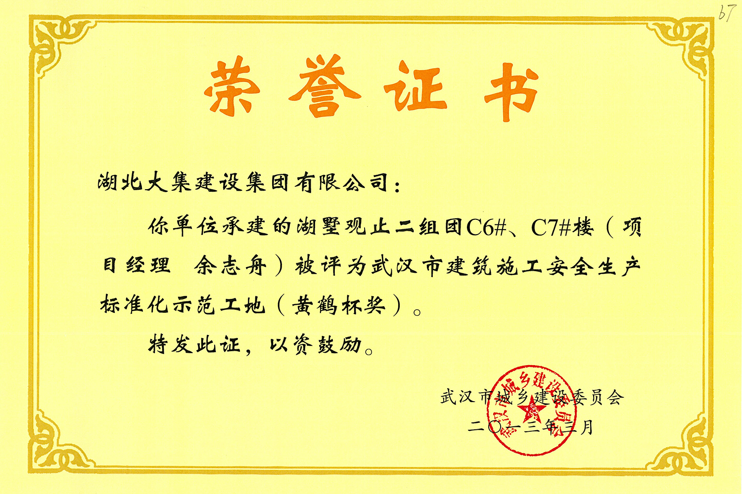 集團(tuán)秉持“安全是紅線,質(zhì)量是品牌,文明施工是形象”的企業(yè)宗旨,不斷加強(qiáng)全面管理,注重提高自身素質(zhì),以完美的履約、優(yōu)良的質(zhì)量、滿意的服務(wù),贏得了信譽(yù)。近年來,湖北大集建設(shè)集團(tuán)先后與中石化集團(tuán)、中鐵上海工程局、中建八局、中鐵十二局、碧桂園集團(tuán)、世茂集團(tuán)、綠地集團(tuán)等央企、國(guó)企、地方標(biāo)志性建設(shè)單位合作,先后承建了“碧桂園知音豪庭”項(xiàng)目、“碧桂園光谷云境”項(xiàng)目、“大集G區(qū)蓮溪花園”項(xiàng)目等多個(gè)高層住宅小區(qū);承建了世茂龍灣46#、47#、48#地塊、花博匯桃李春風(fēng)二期等多個(gè)精品高端別墅群項(xiàng)目;承建了“南湖中學(xué)”、“南湖小學(xué)”、“南湖幼兒園”、“博奧幼兒園”等多個(gè)教育配套項(xiàng)目;承建了“孝感英眾超算終端科技產(chǎn)業(yè)園”、“鴻盛華全球航空服務(wù)產(chǎn)業(yè)園”、“盟盛汽車產(chǎn)業(yè)園”、“中原印務(wù)晶毅”等多個(gè)具有特殊設(shè)備安裝需求的鋼、混結(jié)構(gòu)工業(yè)廠房項(xiàng)目;承建了“常福商務(wù)廣場(chǎng)”等大型商業(yè)綜合體;承建了后官湖綠道二期、三期,常貴路西延伸段、黃星大道等多條大型道路市政項(xiàng)目;自主開發(fā)了“聚盛晶尚”住宅項(xiàng)目,改善人居環(huán)境,引領(lǐng)綠色棲居新領(lǐng)域;所有工程嚴(yán)格執(zhí)行施工作業(yè)全過程質(zhì)量、安全管理,多個(gè)項(xiàng)目被省、市級(jí)監(jiān)管單位授予“省結(jié)構(gòu)優(yōu)質(zhì)”、“省安全文明施工現(xiàn)場(chǎng)”、“市結(jié)構(gòu)優(yōu)質(zhì)”、“市安全文明施工示范項(xiàng)目”、“樣板工地”等榮譽(yù)稱號(hào)。