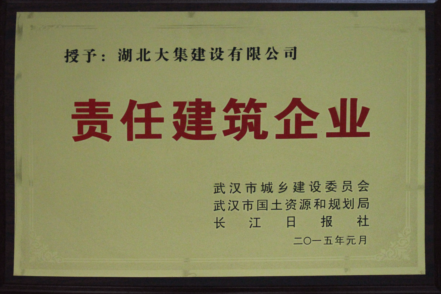 集團(tuán)在發(fā)展壯大的同時(shí),堅(jiān)持守法經(jīng)營(yíng)、依法納稅,堅(jiān)持履行社會(huì)責(zé)任,多年來積極投身社會(huì)公益事業(yè)。省、市、區(qū)行業(yè)主管部門連續(xù)多年授予公司為“武漢地區(qū)建筑業(yè)AAA信譽(yù)企業(yè)”、“武漢地區(qū)建筑業(yè)優(yōu)秀企業(yè)”、“武漢市最具成長(zhǎng)性民營(yíng)建筑企業(yè)”、“勞動(dòng)保障守法誠(chéng)信A級(jí)單位”等榮譽(yù),多次被省、市工商局評(píng)為“守合同重信用”企業(yè),多年被地方政府授予“納稅貢獻(xiàn)獎(jiǎng)”。
