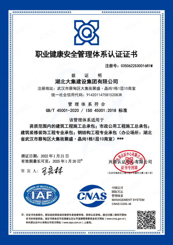 湖北大集建設(shè)集團(tuán)有限公司成立于1990年,注冊(cè)資本10500萬(wàn)元,是武漢市蔡甸區(qū)本土建筑行業(yè)的龍頭企業(yè),在行業(yè)內(nèi)具有一定的品牌影響力。擁有建筑工程施工總承包一級(jí)、市政公用工程施工總承包一級(jí)、橋梁工程專業(yè)承包一級(jí)、隧道工程專業(yè)承包一級(jí)、輸變電工程專業(yè)承包一級(jí)、鋼結(jié)構(gòu)工程專業(yè)承包一級(jí)、地基基礎(chǔ)工程專業(yè)承包一級(jí)、電子與智能化工程專業(yè)承包一級(jí)、建筑裝修裝飾工程專業(yè)承包一級(jí)等多項(xiàng)資質(zhì)。現(xiàn)已形成“建筑施工、園林綠化、文化旅游、房地產(chǎn)開發(fā)與物業(yè)管理”四大產(chǎn)業(yè)格局,并通過了行業(yè)和國(guó)家質(zhì)量管理體系、環(huán)境管理體系和職業(yè)健康安全管理體系認(rèn)證,三大安全管理體系日臻完善,是一家綜合力較強(qiáng)的綜合性建筑施工企業(yè)。