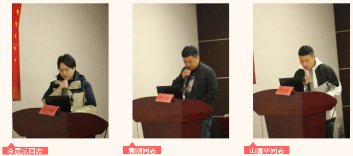 大會第一項議程,討論并確定發(fā)展對象和入黨積極分子。大會嚴(yán)格按照黨員發(fā)展流程,入黨申請人李晨樂同志、袁剛同志匯報了入黨動機(jī)、對黨的認(rèn)識,入黨積極分子山建華同志宣讀了《入黨志愿書》,匯報了其在工作學(xué)習(xí)方面的表現(xiàn)。隨后,經(jīng)過支部黨員們研究討論、投票表決,最終確定山建華同志為發(fā)展對象,李晨樂、袁剛兩名同志為入黨積極分子。