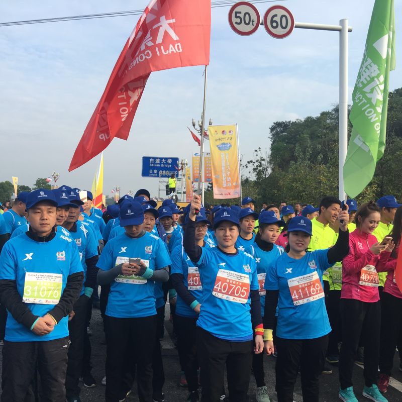 雖然下了一周的雨而且此天氣將會持續(xù)幾天,可是仍然阻擋不了大家參賽的勁頭和熱情,天不亮就早早起床直赴公司大院集合整裝待發(fā),所有參賽人員到齊后乘坐巴士前往比賽主會場提前進(jìn)行拉伸運(yùn)動。我們到達(dá)目的地時天還剛蒙蒙亮,氣溫也很低,但是已經(jīng)聚集了不少參賽人員及后勤保障、治安人員,個個精神抖擻、容光煥發(fā),都期待著順利地跑出好成績!