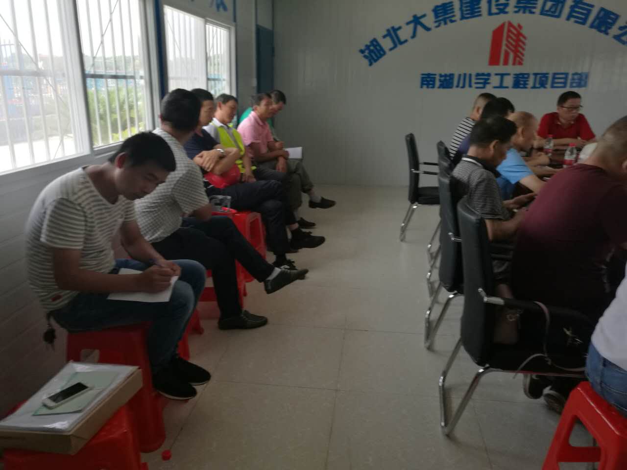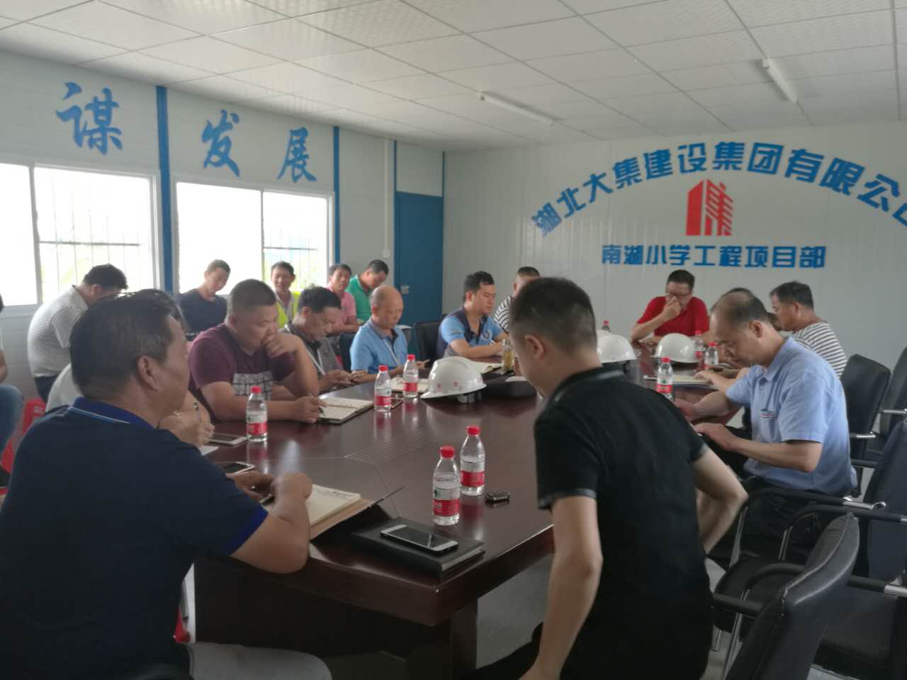 會(huì)議開始, 由南湖小學(xué)項(xiàng)目施工員介紹了該項(xiàng)目的主要情況及進(jìn)度,并表達(dá)了南湖小學(xué)項(xiàng)目創(chuàng)杯爭(zhēng)優(yōu)的決心,確保楚天杯,爭(zhēng)創(chuàng)魯班獎(jiǎng),并對(duì)施工工藝細(xì)節(jié)和各個(gè)操作班組制定了具體規(guī)范和標(biāo)準(zhǔn)。