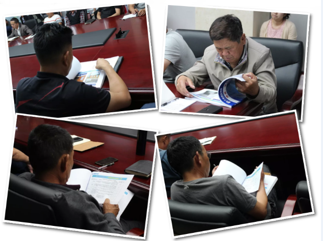 工程部為每個項目部發(fā)放4月份質量安全檢查書冊,項目負責人認真閱讀