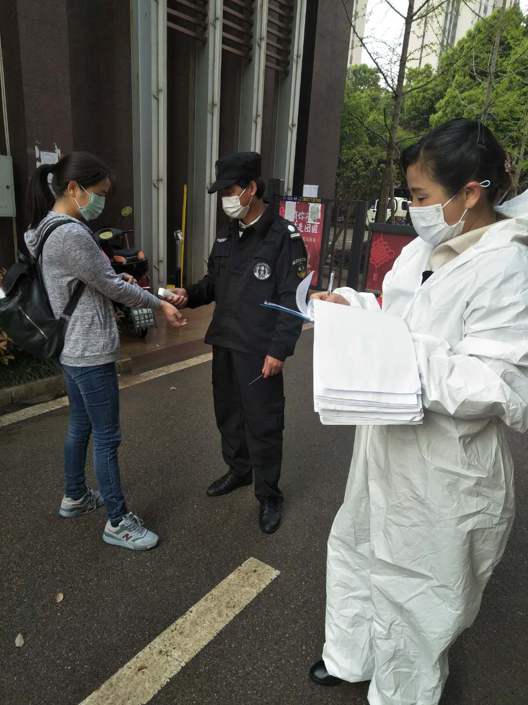 即使沒有隔離衣,沒有防護(hù)服,只有一只最普通的口罩,但只要一個通知,所有的物業(yè)人員——保潔員、保安員、維修員、客服員,不分崗位,都義無反顧地投入到戰(zhàn)斗第一線。