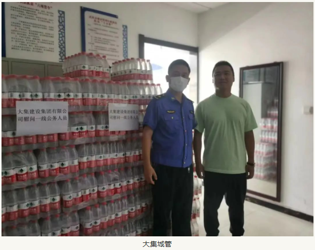 活動中,湖北大集建設(shè)集團分別向大集城管、大集派出所、大集交通隊、奓山派出所和奓山交通隊贈送了100箱礦泉水和20箱紅茶,并表達了對一線民警、交警和城管人員在高溫下堅守崗位的衷心感謝!