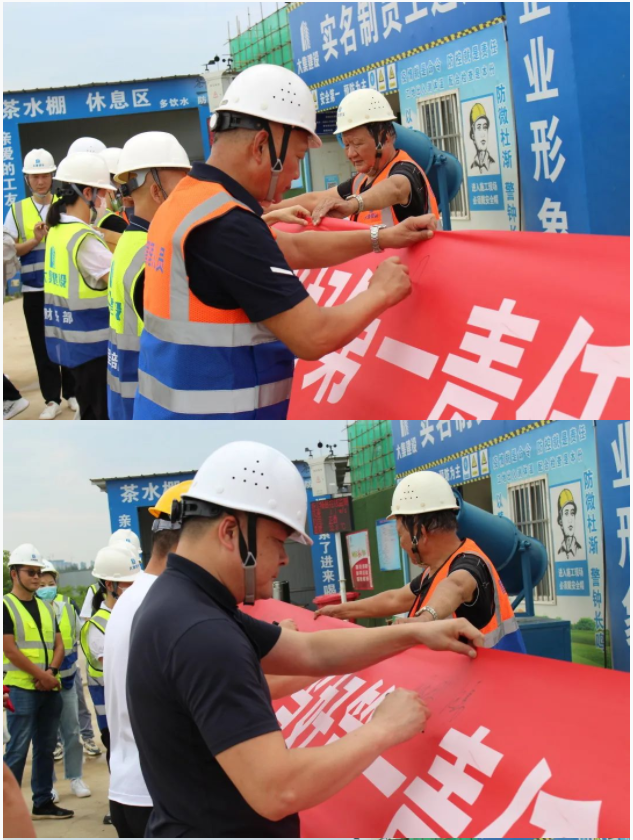 活動開始,集團董事長徐濤、副總經(jīng)理徐家富及各部門負責(zé)人、各項目經(jīng)理率先在“遵守安全生產(chǎn)法,當好第一責(zé)任人”條幅上鄭重簽名,寫下對肩負安全生產(chǎn)責(zé)任的承諾,隨后各項目施工員、安全員紛紛在條幅上寫下自己的名字,表達對做好安全生產(chǎn)相關(guān)工作的信心和決心。