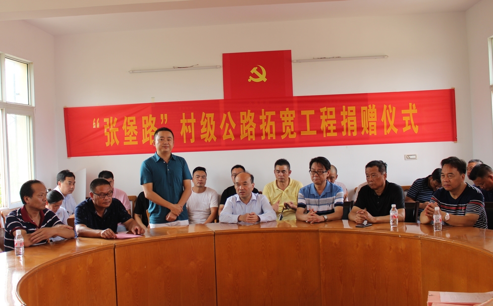 情系家鄉(xiāng)發(fā)展,勇?lián)鐣熑巍?月26日,集團董事長徐濤、總經(jīng)理徐遠征、副總經(jīng)理徐家富及各項目經(jīng)理來到蔡甸區(qū)大集街堡家咀村村委會,為“張堡路”村級公路拓寬工程進行捐贈,集團董事長徐濤代表湖北大集建設集團為該工程捐款一百萬元。