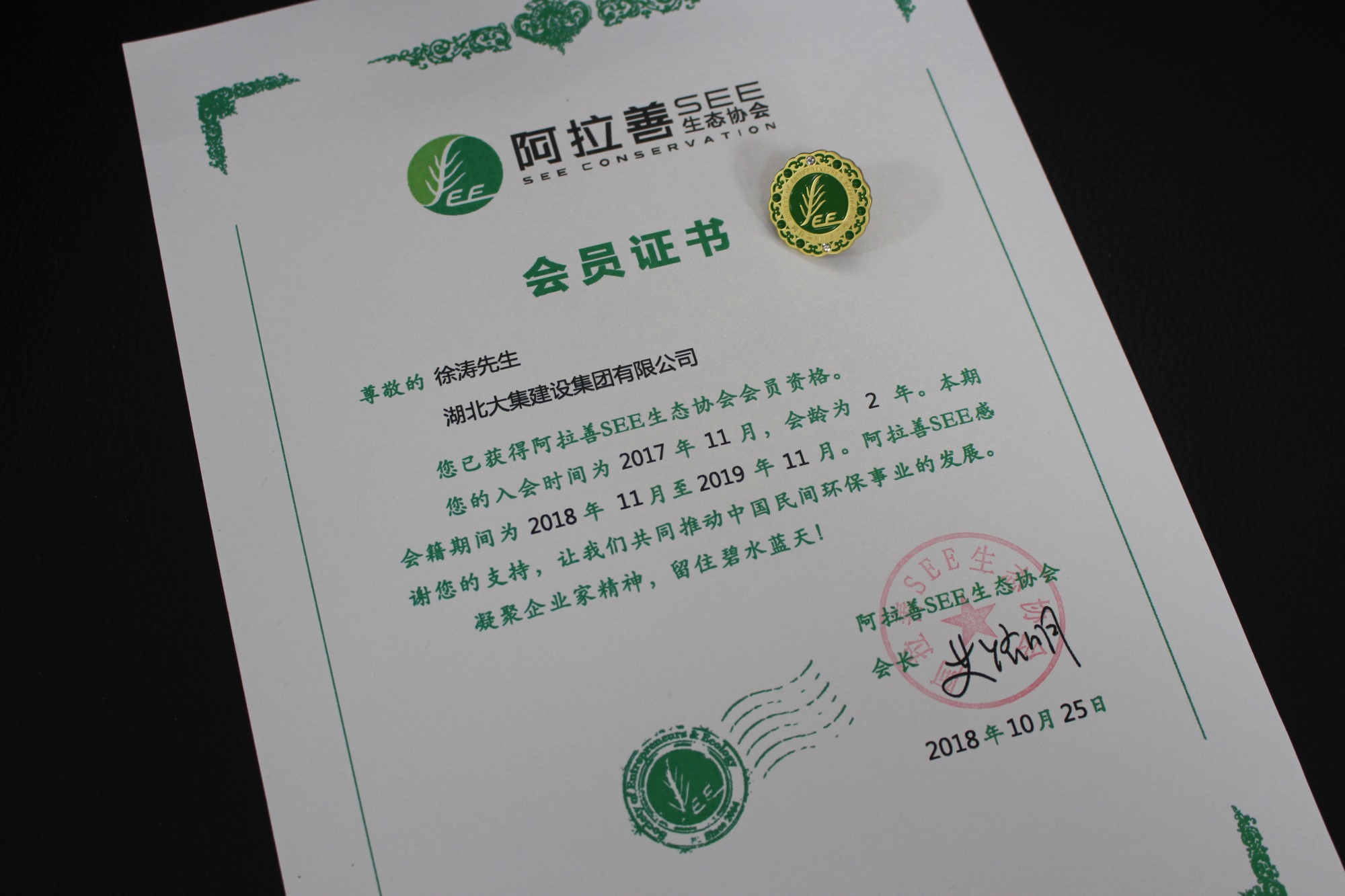 2017年11月,集團董事長徐濤攜湖北大集建設(shè)集團正式加入中國最具影響力的環(huán)境保護公益組織——阿拉善SEE生態(tài)協(xié)會,正式成為阿拉善SEE會員。到如今,集團加入阿拉善SEE生態(tài)協(xié)會已經(jīng)第二個年頭了。